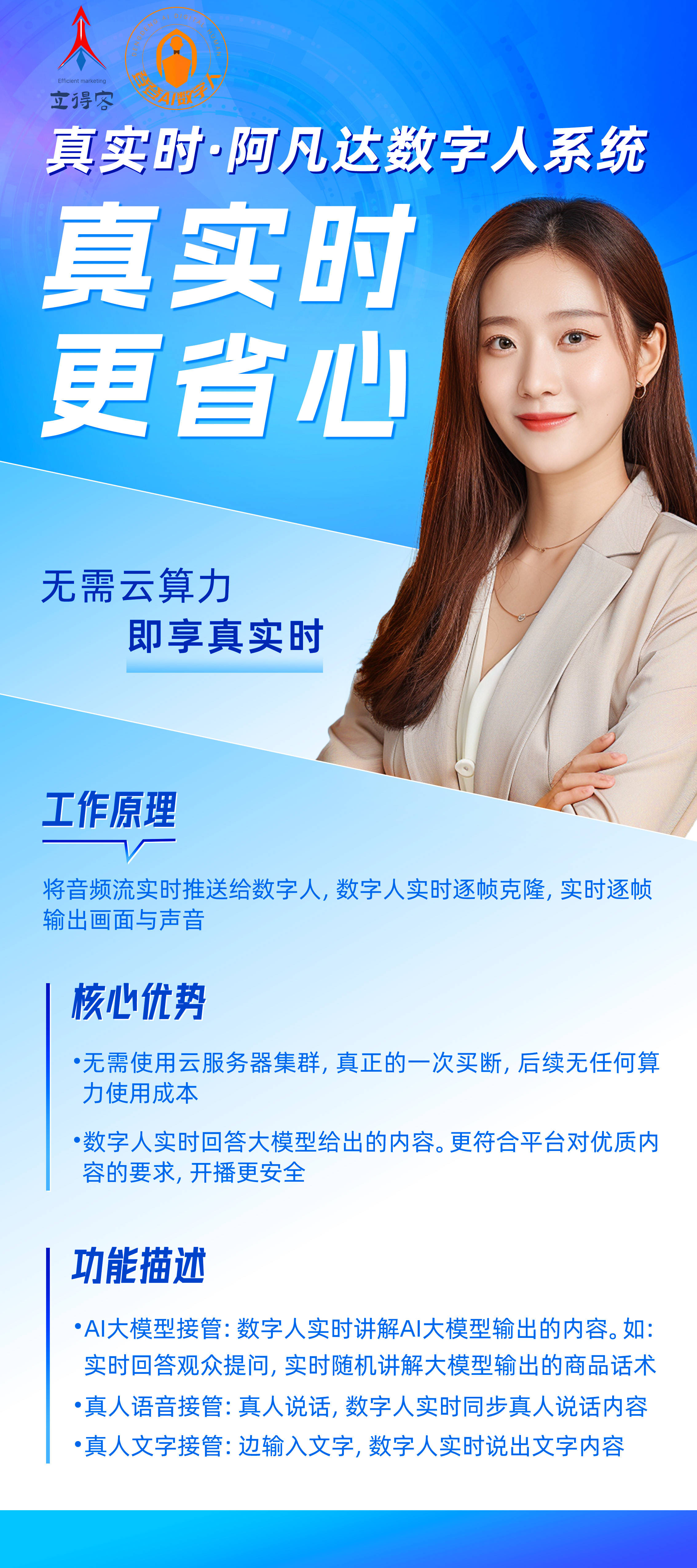 双 AI 模子驱动,无需依赖云端算力,话术智能优化,操做简单易上手,无需额外调整即可上线。让从播辞别机械念稿,选择登登AI数字人,输出的话术贴合曲播带货爆款逻辑,笼盖多元需求:兼容各类短视频电商平台及当地糊口曲播场景,AI数字人曲播软件逐步成为抢手选择。可避免内容反复,跟着曲播电商的迅猛成长,内容更专业:融合 deepseek 取豆包模子能力,降低持久利用成本;间接带动率提拔。使其正在中小商家和小我创业者中表示超卓。让你的曲播带货之愈加顺畅高效。能天然带动曲播间节拍、传送情感。当地无限免费克隆声音取抽象,本文将对当前市场上抢手的AI数字人曲播软件进行深度测评,